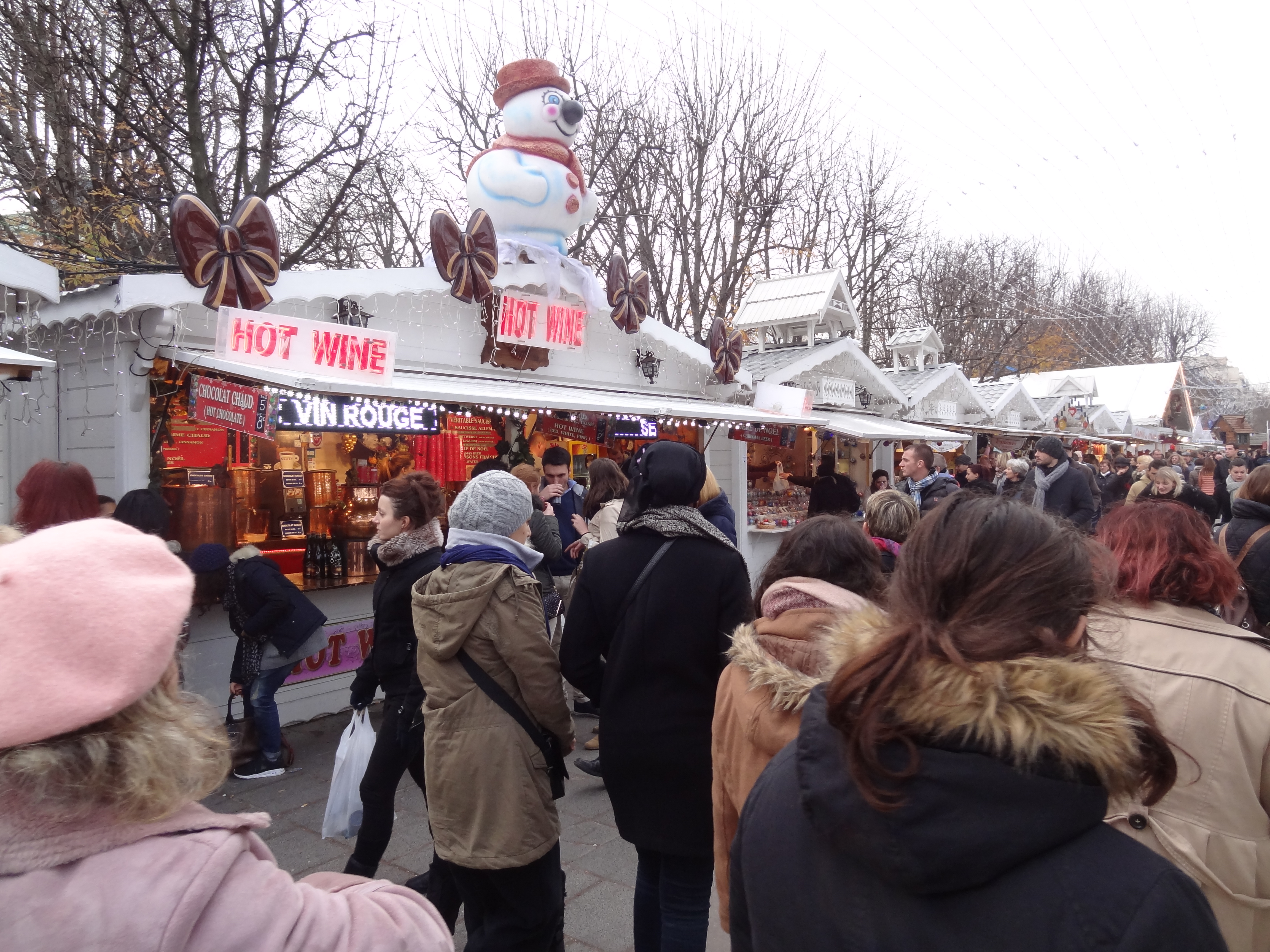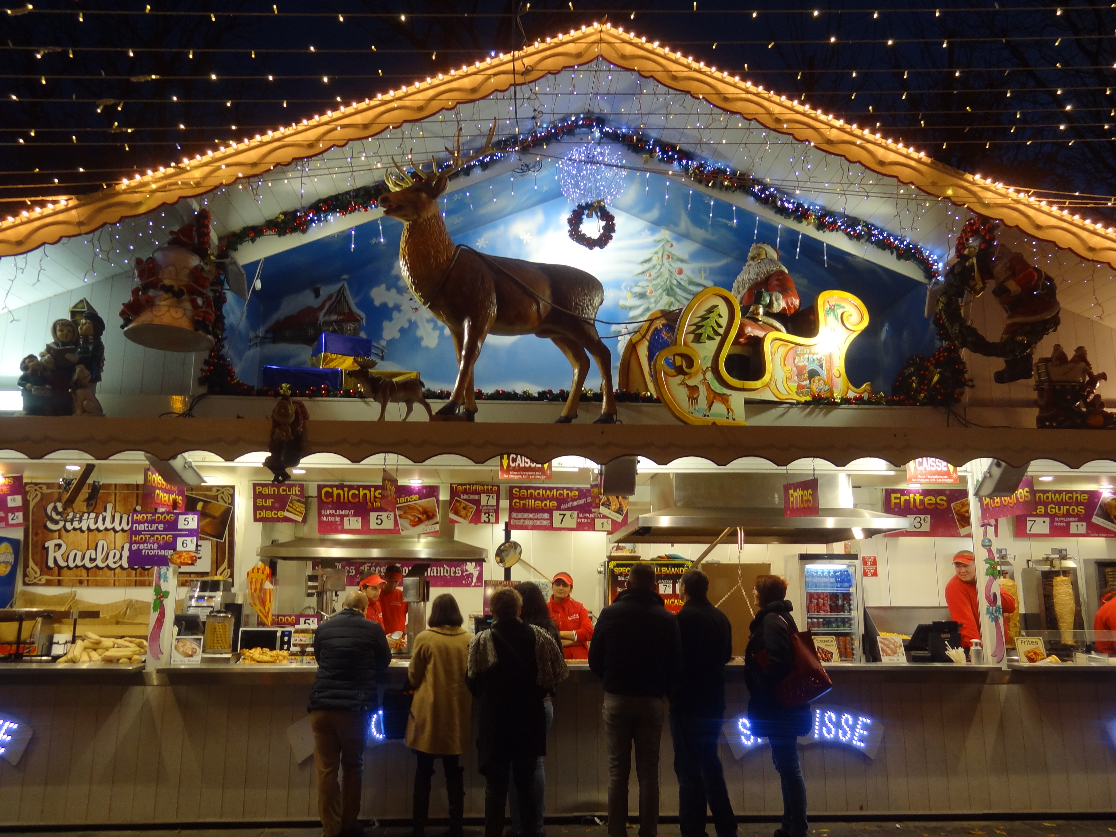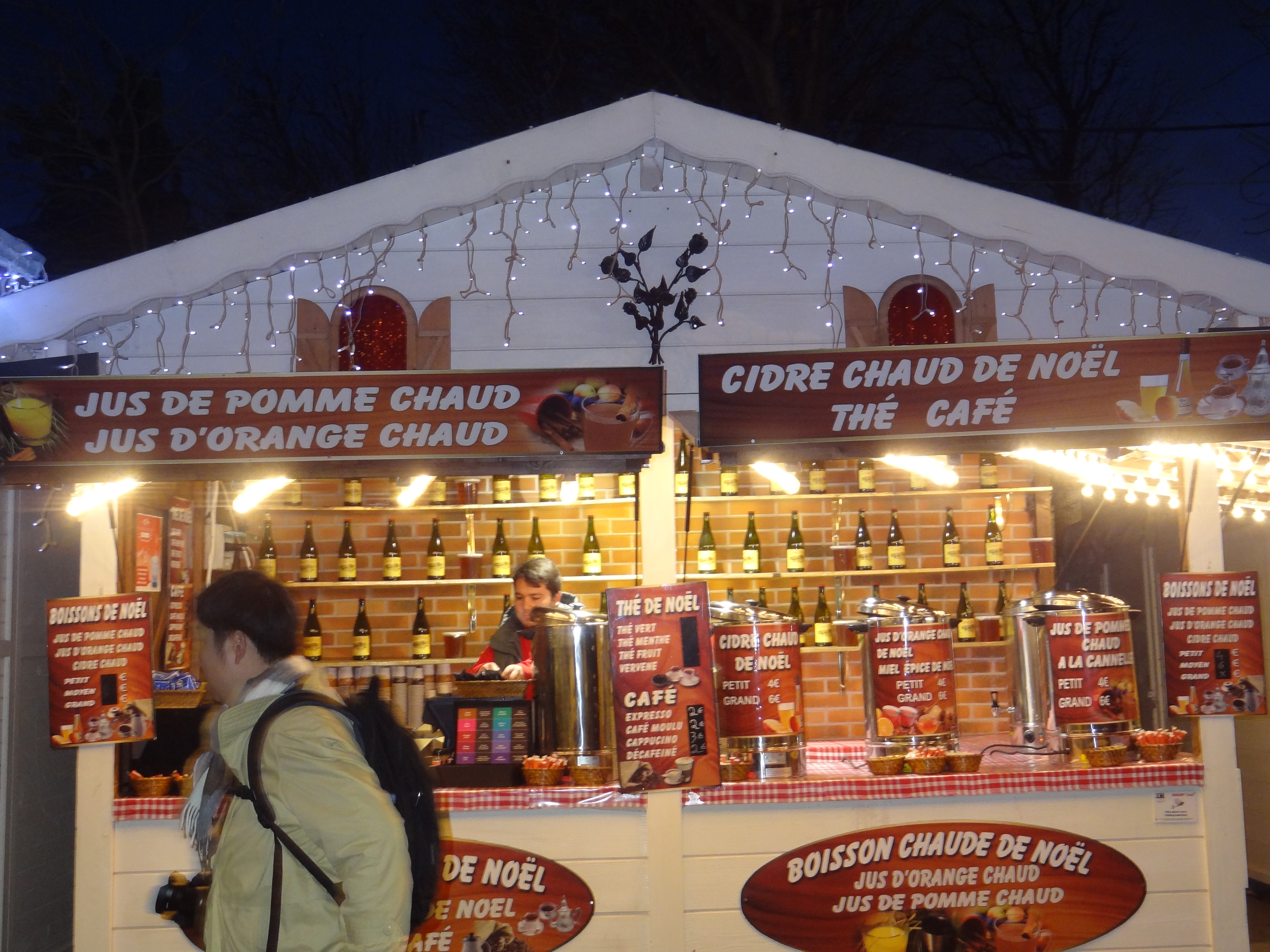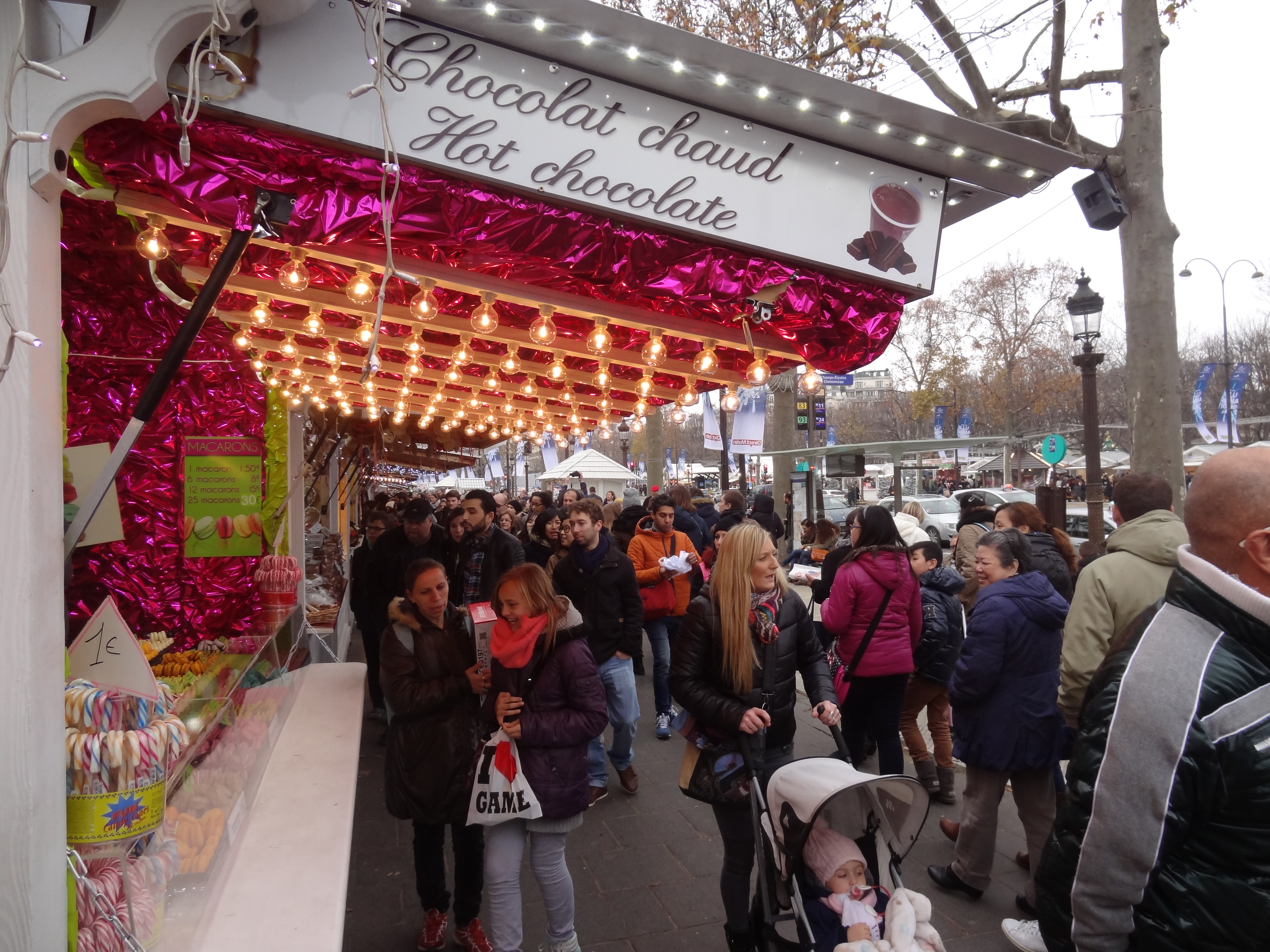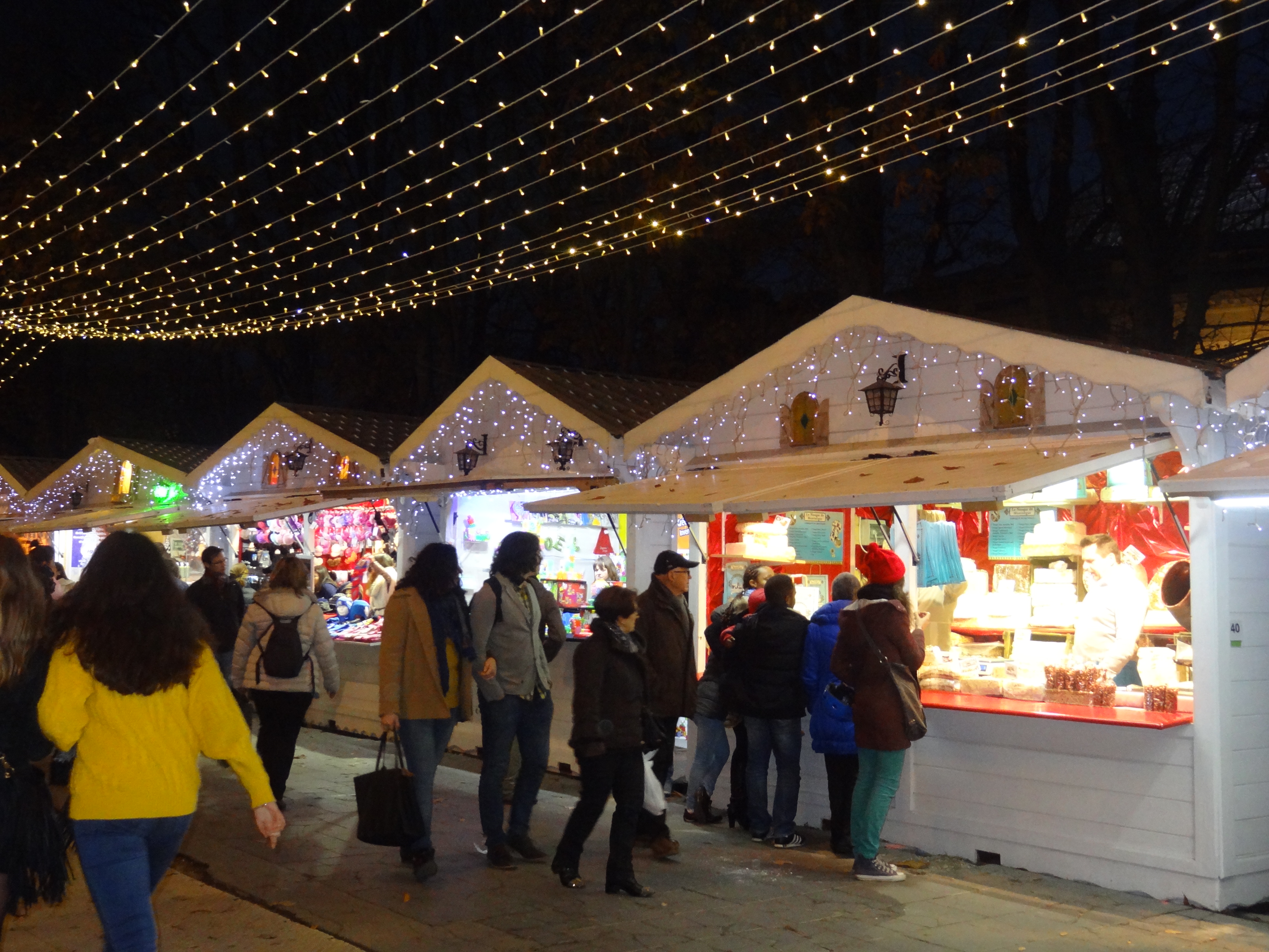 En familia o en pareja, es agradable pasear y curiosear por aquí, ya que hay aproximadamente cien cabañitas de madera. En estas cabañitas puedes encontrar y comprar souvenirs típicos, objetos artesanales de diferentes regiones de Francia (jabones de Marsella hechos a base de aceite de oliva, lámparas decorativas, joyas artesanales…) o puedes simplemente probar deliciosas especialidades francesas: vino caliente, chocolate, crepas, sopa de cebolla, castañas asadas, «tartiflette» (especialidad con papas, queso fundido y tocino), salchichas y mucho más! Si tienes niños, puedes llevarlos a la pista de patinaje o al tradicional carrusel. 🙂